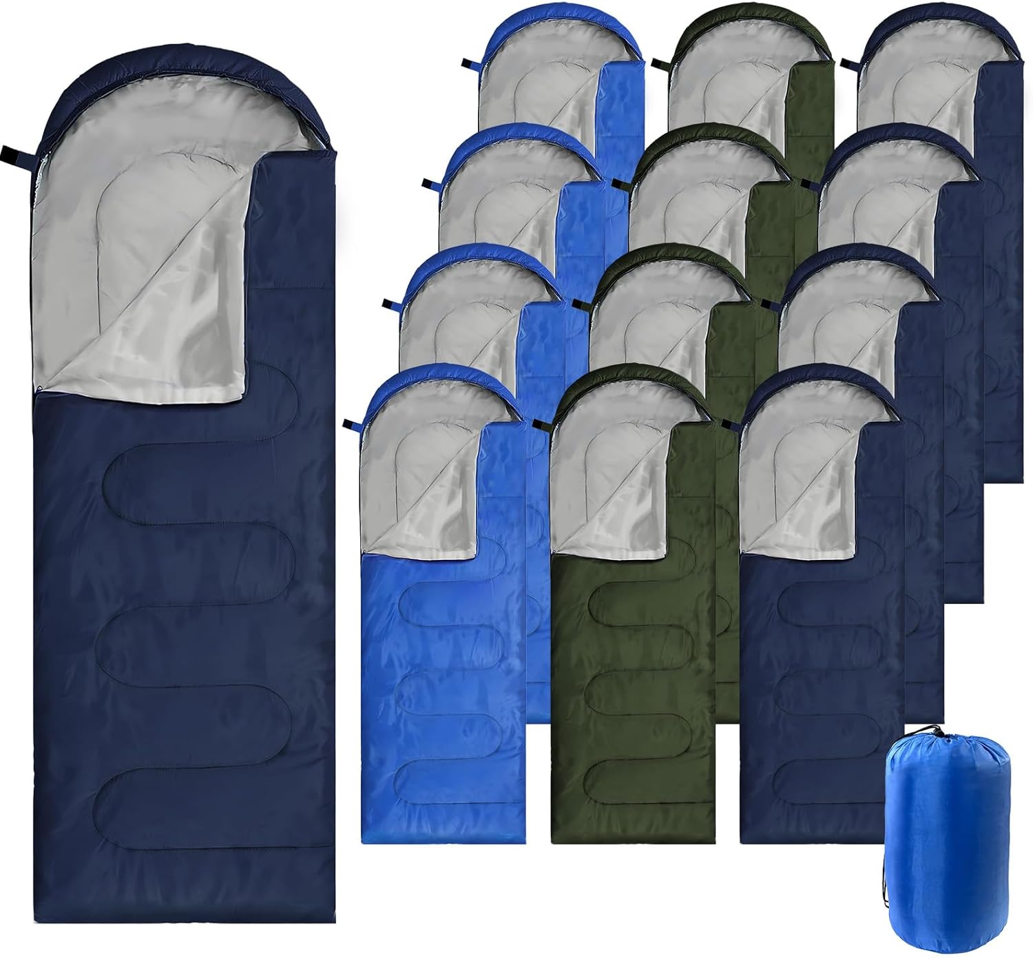 Perfect for Group Adventures: Our camping sleeping bags bulk package includes 12 pieces in 3 vibrant colors, ensuring you have enough for family trips, group camping, or even donations to the homeless. Each sleeping bag measures 83 x 30 inches, designed with ample room for both adults and children, allowing for easy movement and adjustment to find your perfect sleeping position, ensuring a restful night under the stars