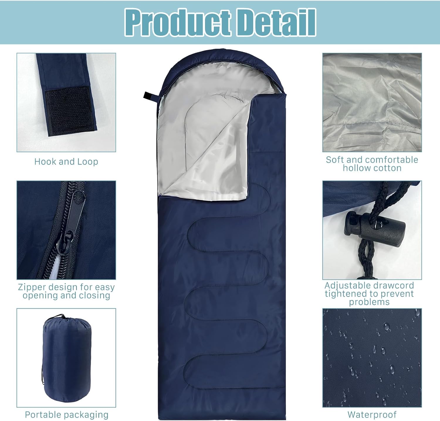 Weather-Resistant Features: Equipped with a robust zipper and a semicircular closure design, these sleeping bags include an adjustable drawstring to minimize cold air entry, keeping you warm and cozy even in challenging weather conditions. Please kindly note that the bag come in vacuum packaging, please dry in the sun before use, absorbent cotton will be more fluffy and warm
