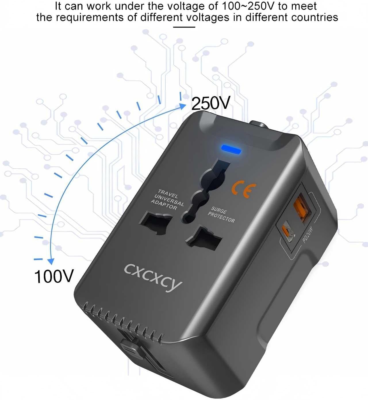 【 Voltage & Safety Reminder 】 This adapter only changes plug shape, not voltage or current. For AC devices (toothbrushes, shavers, hair straighteners, etc.), verify wide‑voltage support (100–250V, 50/60Hz) before use abroad. USB ports work globally with no voltage limits for all travel electronics. Surge protection included for device safety. DO NOT USE ON CRUISE SHIPS — forbidden by most cruise lines.