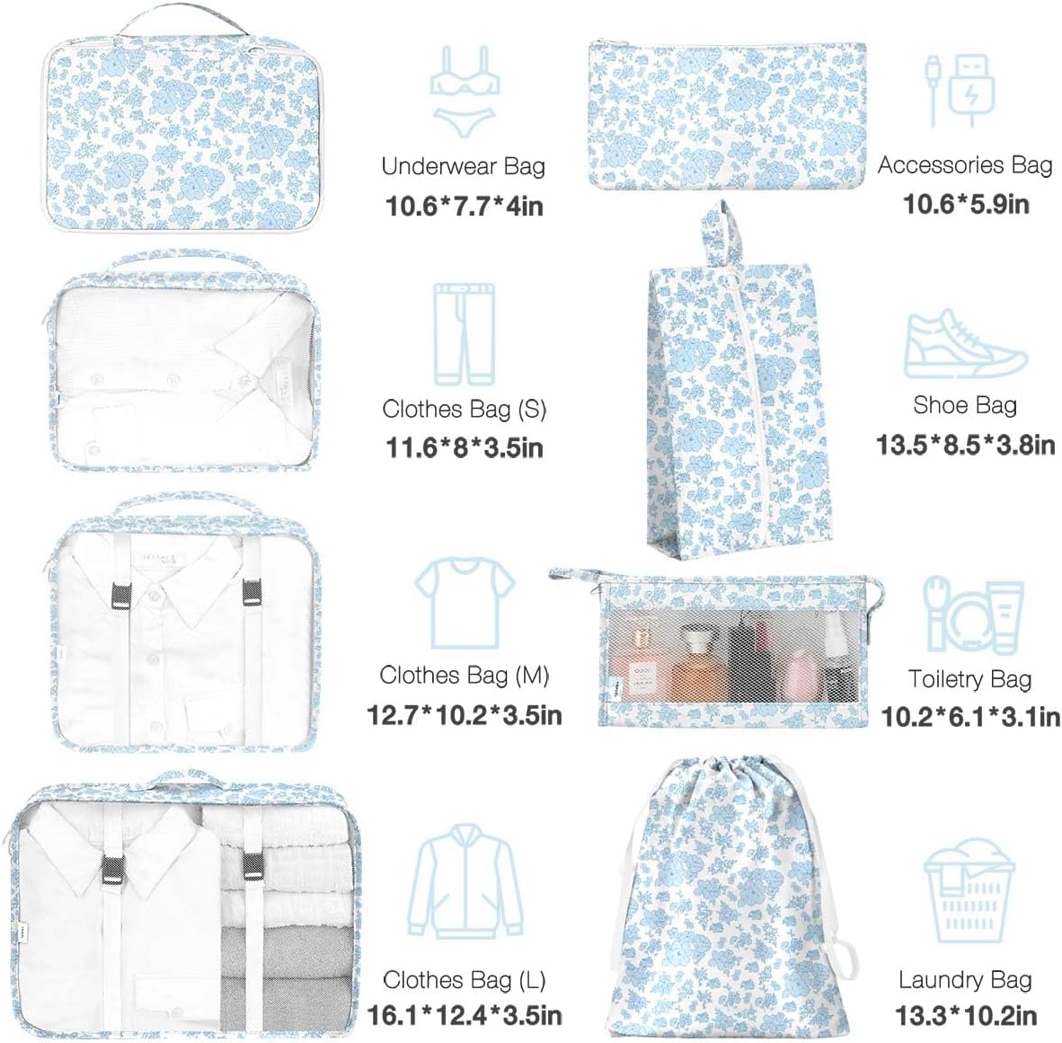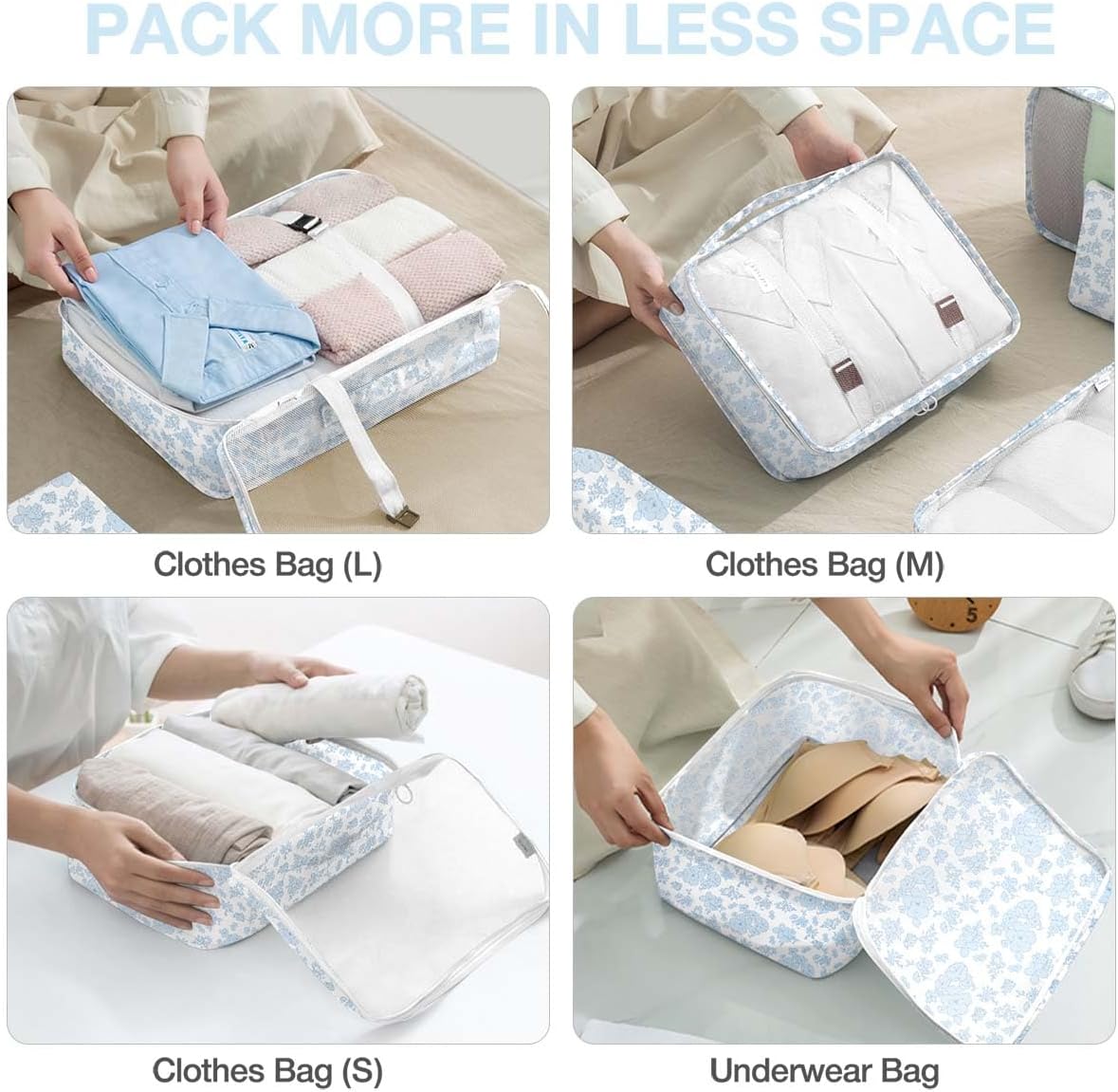 【8 Piece Packing Cubes】Our suitcase organizer bags set come in various sizes to accommodate all your essentials, from clothes and shoes to cosmetics and electronics. The travel bags organizer for luggage make anything organized
