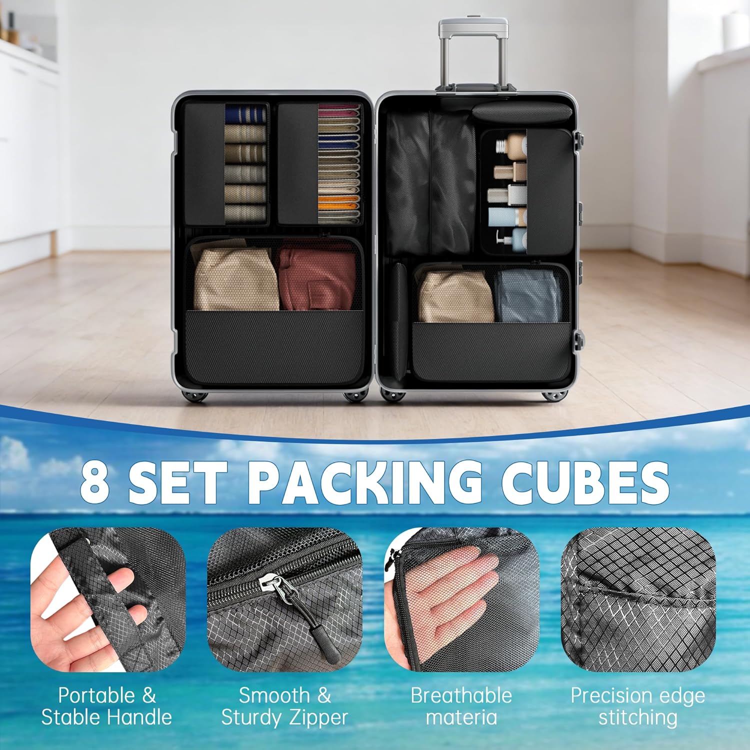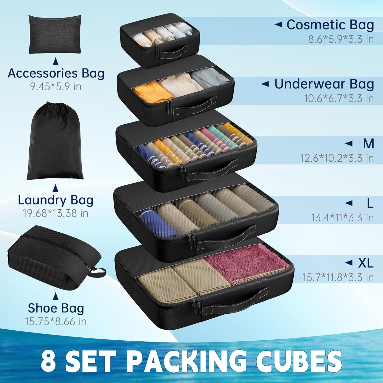 8 Set Packing Cubes for Travel,Luggage Organizers for Travel Accessories
