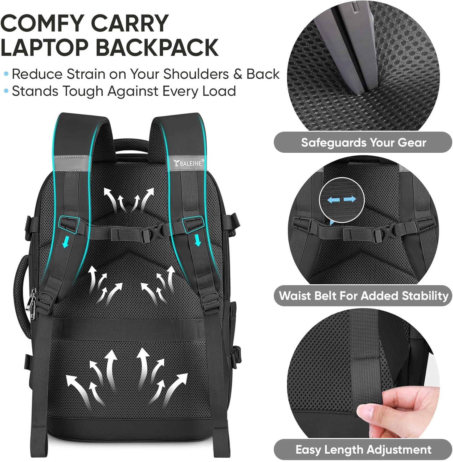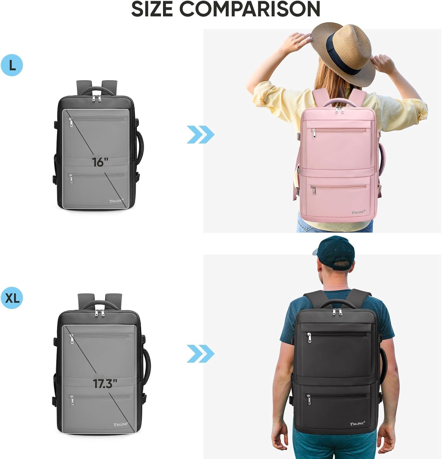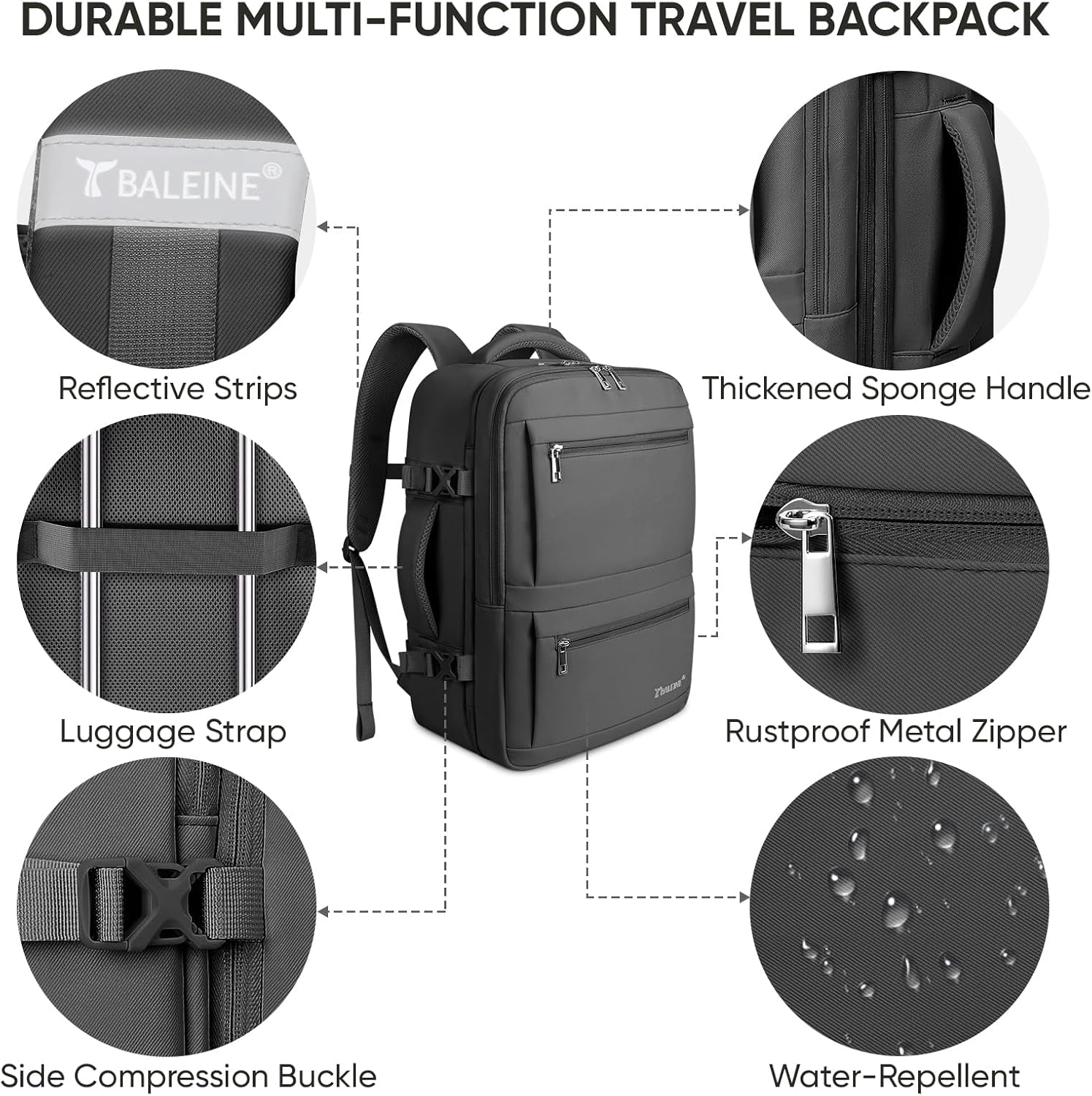 Convenience Design: This large travel backpack comes with a 180-degree zipper opening, facilitating quick passage through airport security; Luggage backpack compact design is suitable for overhead compartments and under-seat storage, making your travel experience smooth and effortless