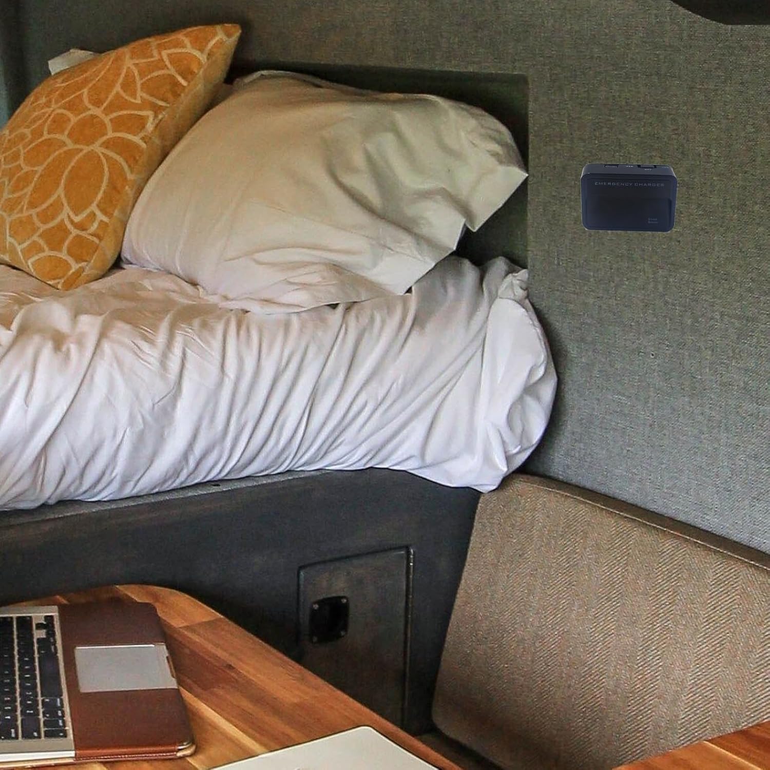 Battery Operated Phone Charger Emergency Hold on Wall USB Battery Powered Power Bank Portable 2 AA Batteries Powered Outlet (Black)