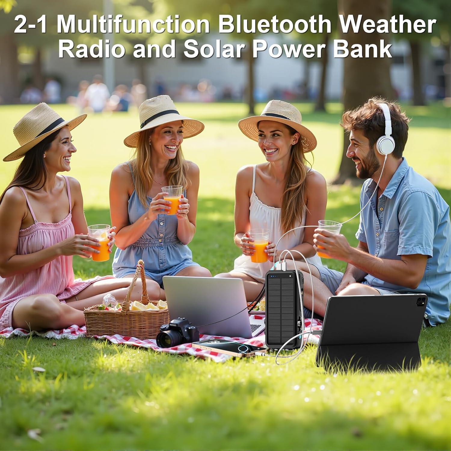 2025 NEW Survival Radio for Home: A 2-in-1 emergency radio and solar power bank featuring FM/NOAA Weather Radio (Please note, AM radio not included), 22000mAh power bank, wireless phone charging, 20W fast charge, hand crank, SOS flashlight, and Bluetooth functionality.