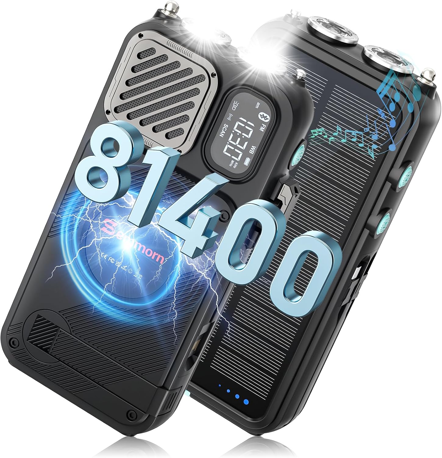 22000mAh Large Battery Capacity: The built-in 22000mAh non-removable rechargeable battery can not only power the weather radio, but also charge your mobile devices in an emergency. With only a single charge, the solar crank radio can play for up to 190 hrs, the flashlight can last for 65 hrs, reducing the need for frequent charging and providing longer reliability.