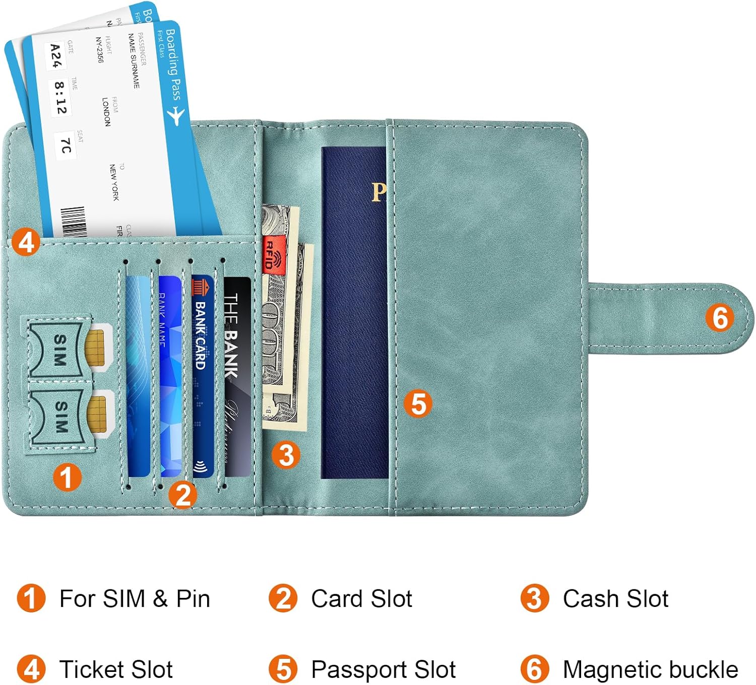 Easy Access and Magnetic Button: Our passport wallet features a convenient magnetic button closure, making it easy to access your passport and documents quickly while keeping them secure. Say goodbye to fumbling with zippers and buttons, our passport holder is designed for ease and efficiency