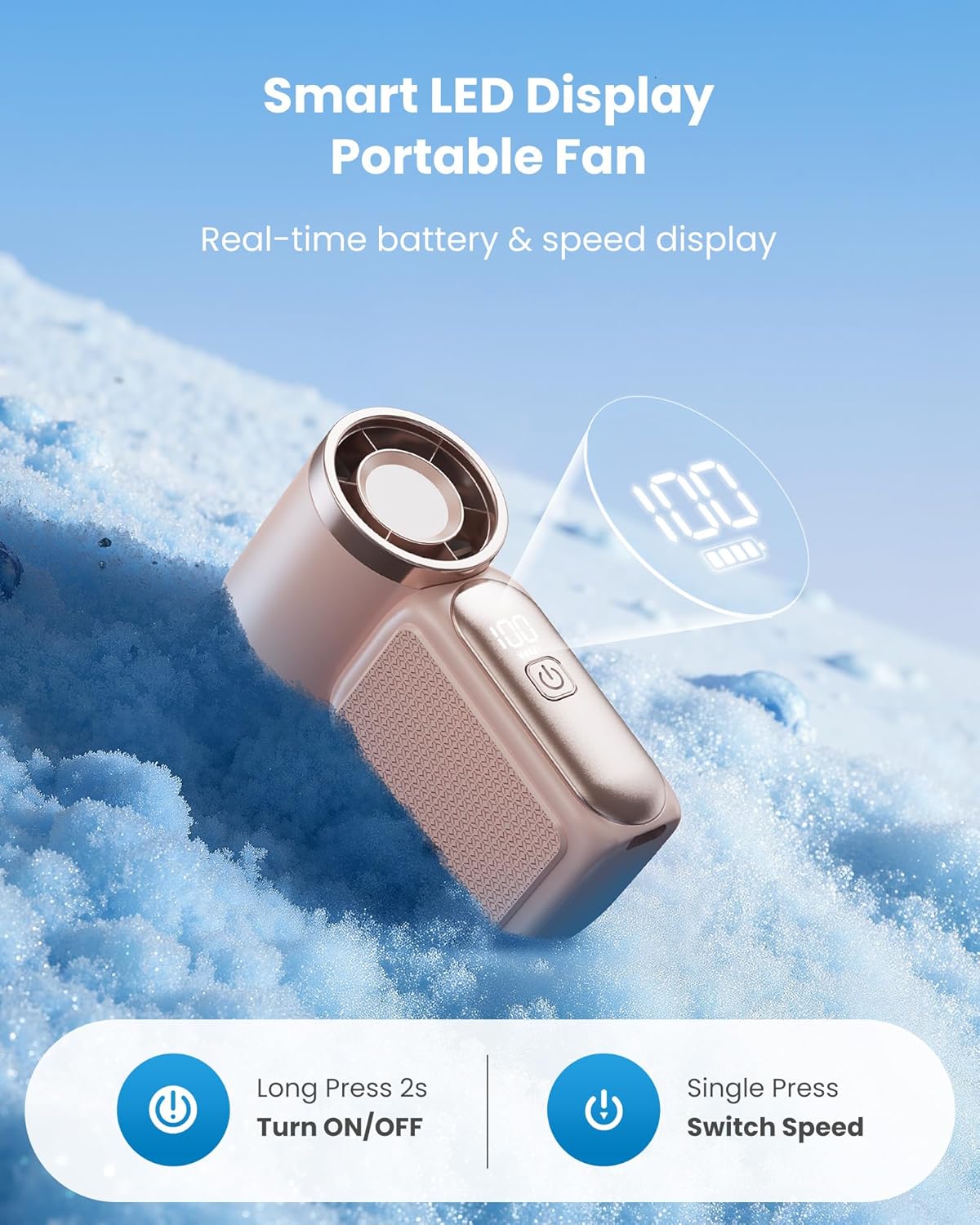 Smart LED Display & 6-Speed Handheld Fan: Stay in full control with a clear LED screen that shows real-time speed and battery level. Easily toggle between 6 wind modes—from soft breeze to turbo cooling—with one button. A user-friendly USB rechargeable fan perfect for makeup, office, or gym use