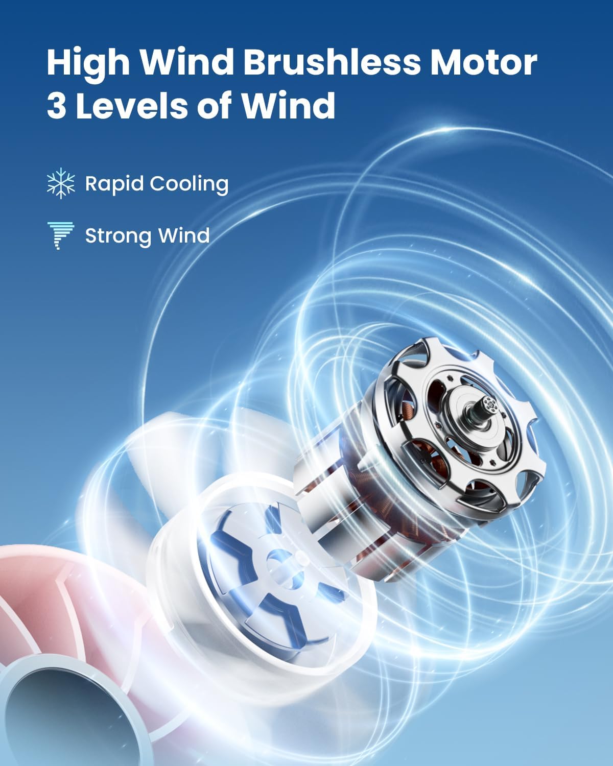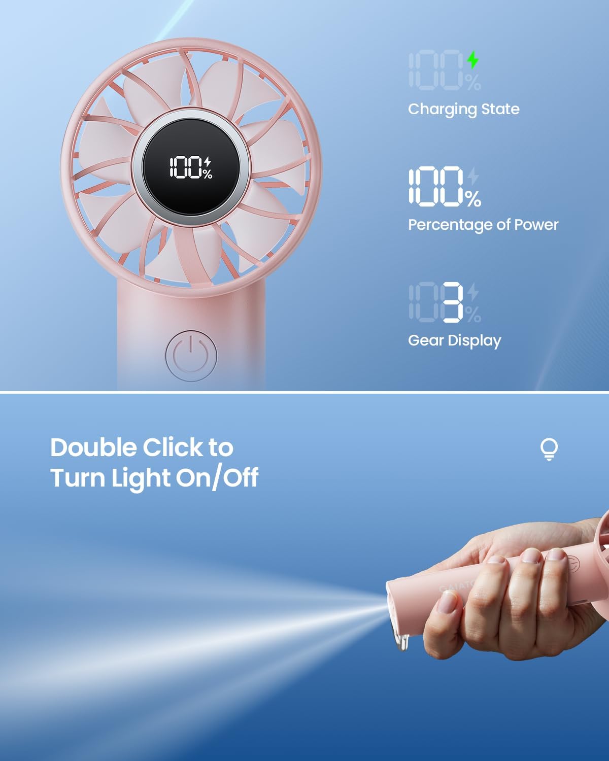 3-Speed & Powerful Wind: This portable mini fan has a built-in powerful brushless motor, which is powerful enough to stably drive the fan blades to rotate at high speed to generate strong wind; Simply press the power button to change the wind speed