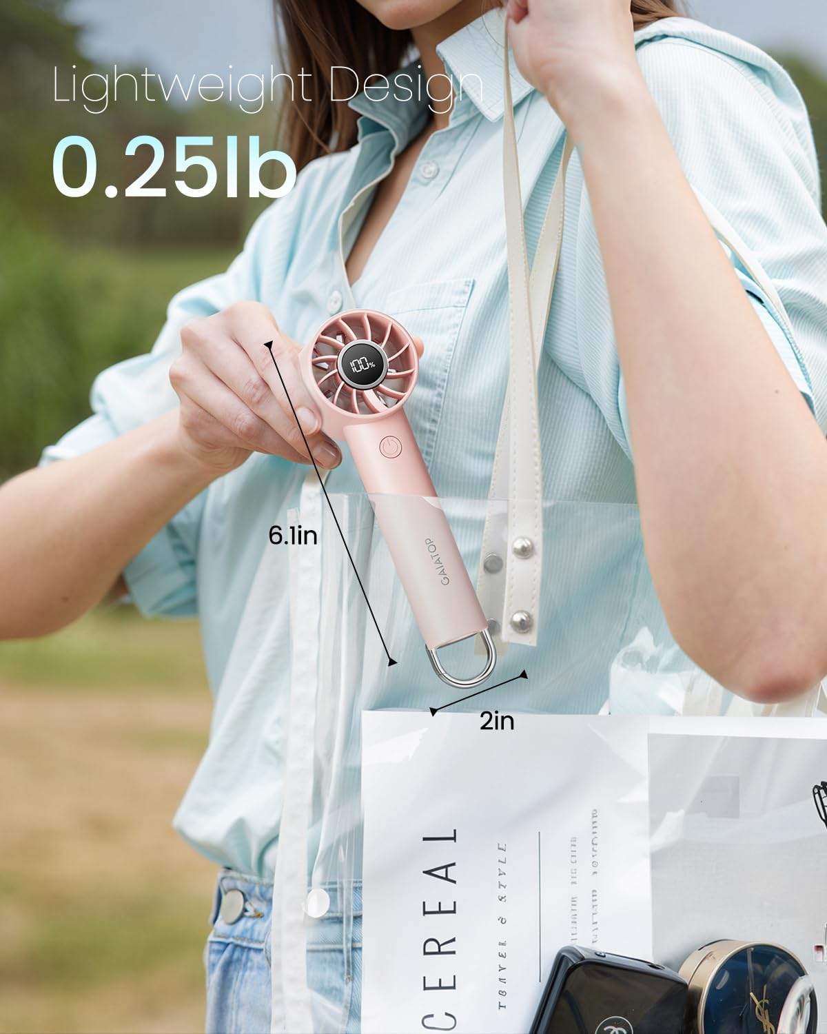 Portable Size: This cute small fan is only 2*2*6 inches, 118g/0.25 lbs. You can put the personal fan in your pocket or bag, or use the metal buckle to hang it on your backpack; It’s the perfect summer companion no matter where you go