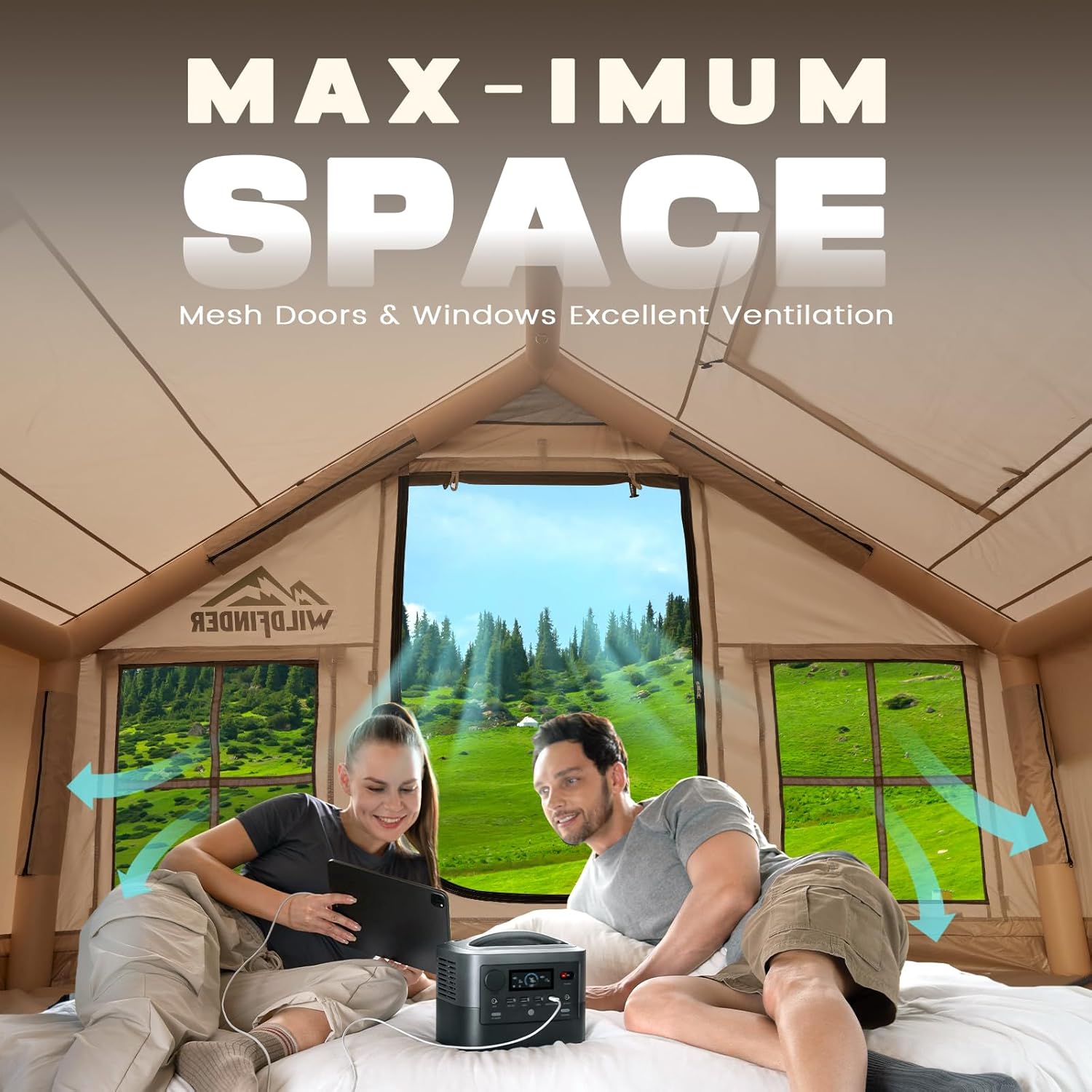 Durable 420D Oxford Fabric: Made from high-density 420D Oxford with PU3000mm waterproofing and UPF30+ protection, this inflatable tent shields you from rain, sun, and changing weather. Tough yet breathable for comfort in any season.