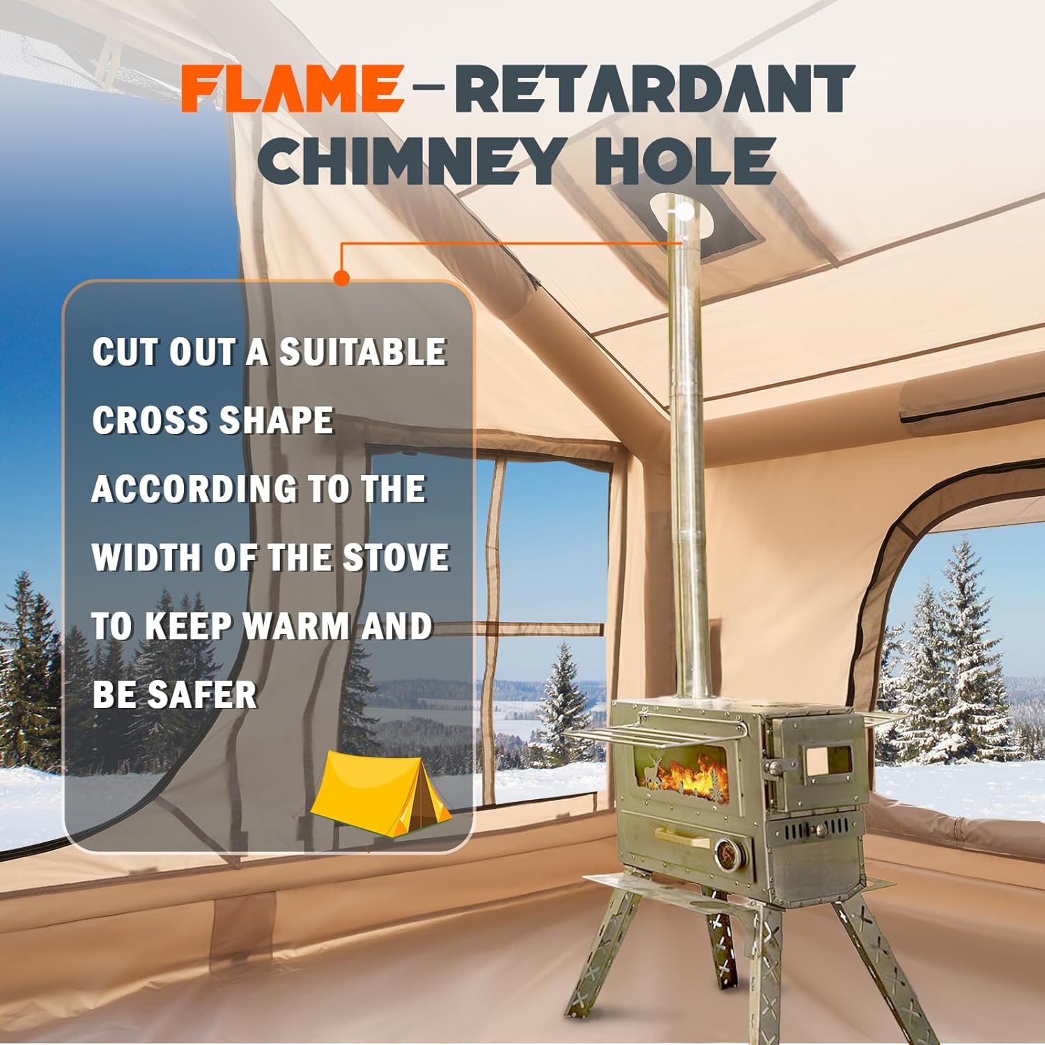 Hot Tent with Stove Jack: Designed for cold-weather camping, this tent features a built-in stove jack for safe use of a wood-burning stove. Stay warm and cook comfortably with proper ventilation and smoke control.