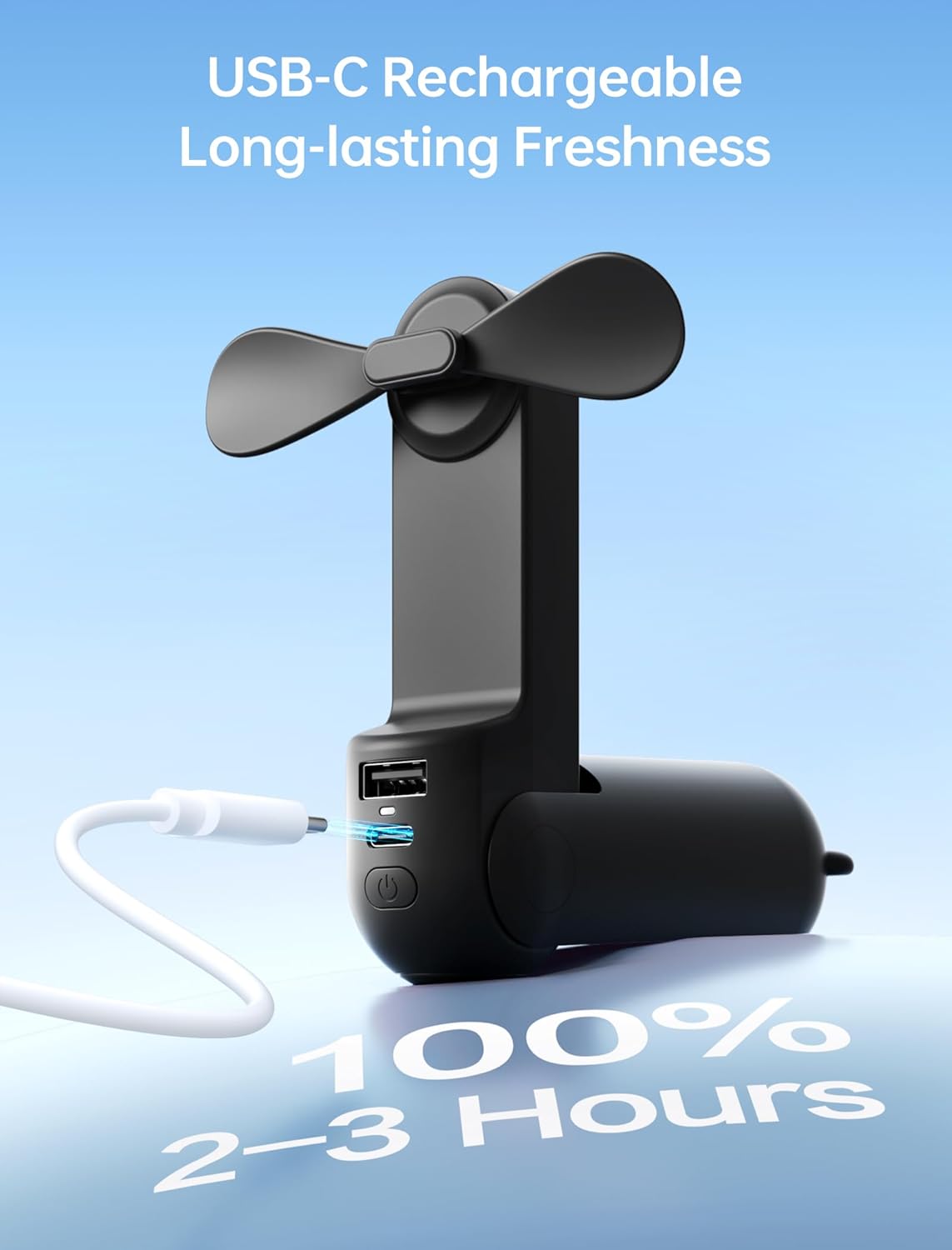 12-19 Hours Cooling Time: With up to 19 hours of cooling time on a single charge, this mini handheld fan ensures you stay refreshed during travel, concerts, and outdoor adventures; Conveniently rechargeable via USB