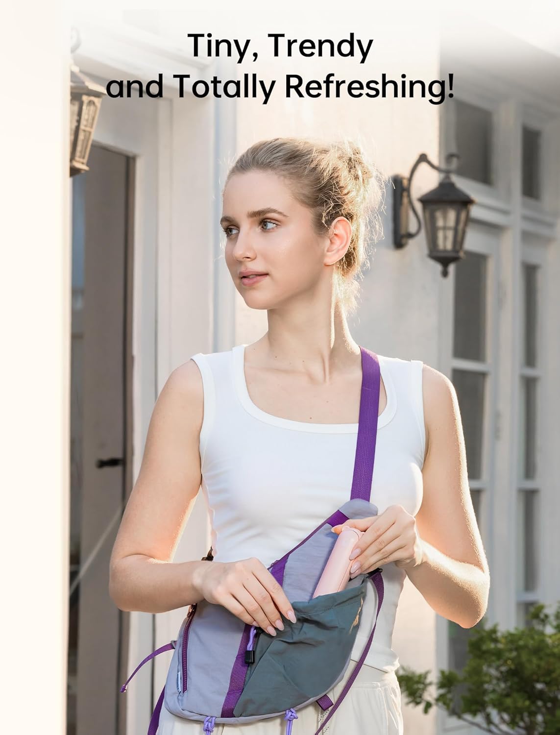 A Palm-sized Backup Charger: Designed with a pocket size, this portable fan easily fits into any bag for on-the-go convenience; Doubling as a backup power bank, it keeps your devices charged when needed, making it your travel and summer essentials
