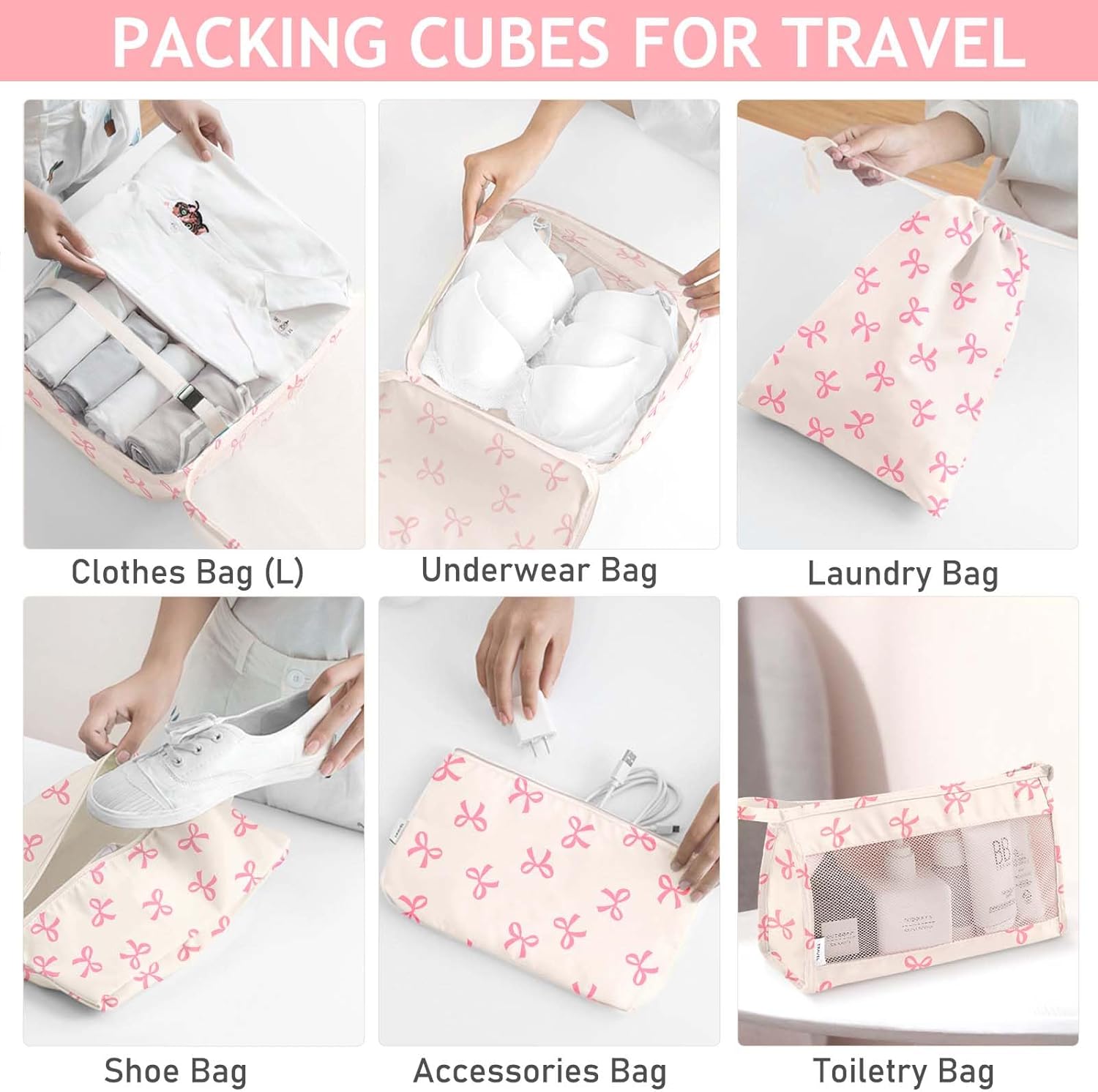 【8PC Complete Set】 3 X different size Packing Cubes, 1 X Bra Underwear bag , 1 X Shoes Bag , 1 X Toiletry Bag ,1 X Laundry Bag ,1 X Cable Bag. Multiple travel bags organizer meet many lifestyles including traveling, backpacking, camping, gym