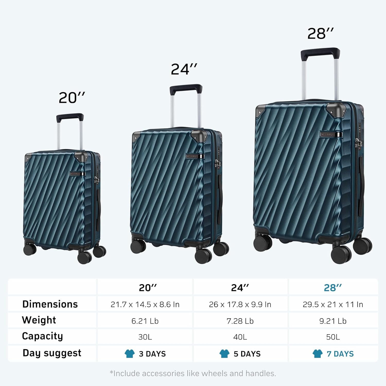 【3 Piece Luggage】: Discover the ideal travel companion with our suitcase set featuring a spacious 28-inch large suitcase, a versatile 24-inch medium checked bag, a convenient 20-inch carry-on.Whether it’s a family vacation, a business trip, or a solo getaway, our diverse range of luggage sizes ensures you have the perfect storage solution for every travel need.