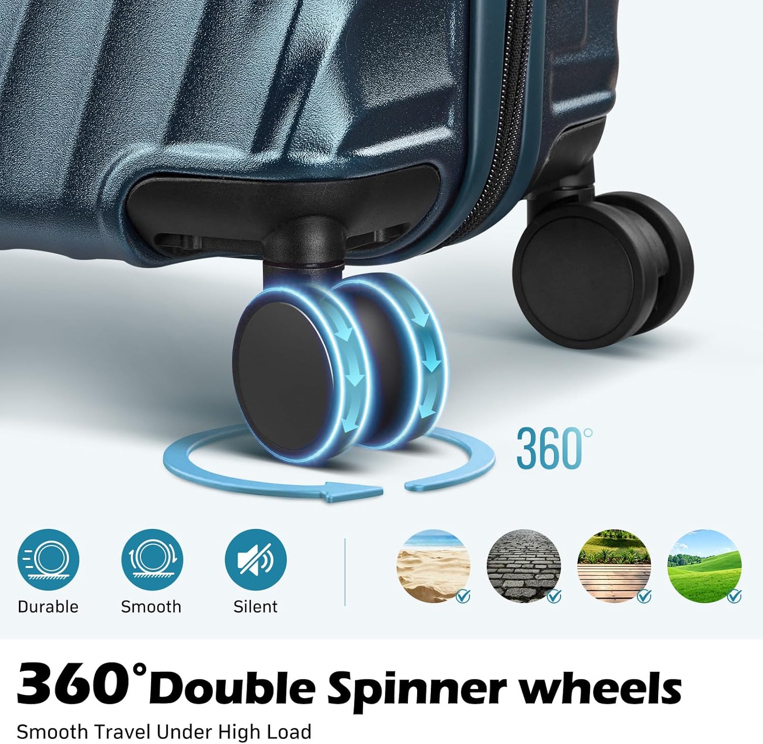 【Spinner Wheels and YKK Zippers】 : Experience smooth and silent travel with our advanced multi-directional spinner wheels, featuring premium soft TPU and internal lubricating balls. With 360° rotation, these wheels glide effortlessly. Each piece of luggage has successfully passed rigorous drop tests and a professional walking test, guaranteeing reliability for long journeys and business trips.Our luggage incorporates Ykk zippers, engineered for exceptional durability. Travel confidently, knowing your items are secure and easily accessible.
