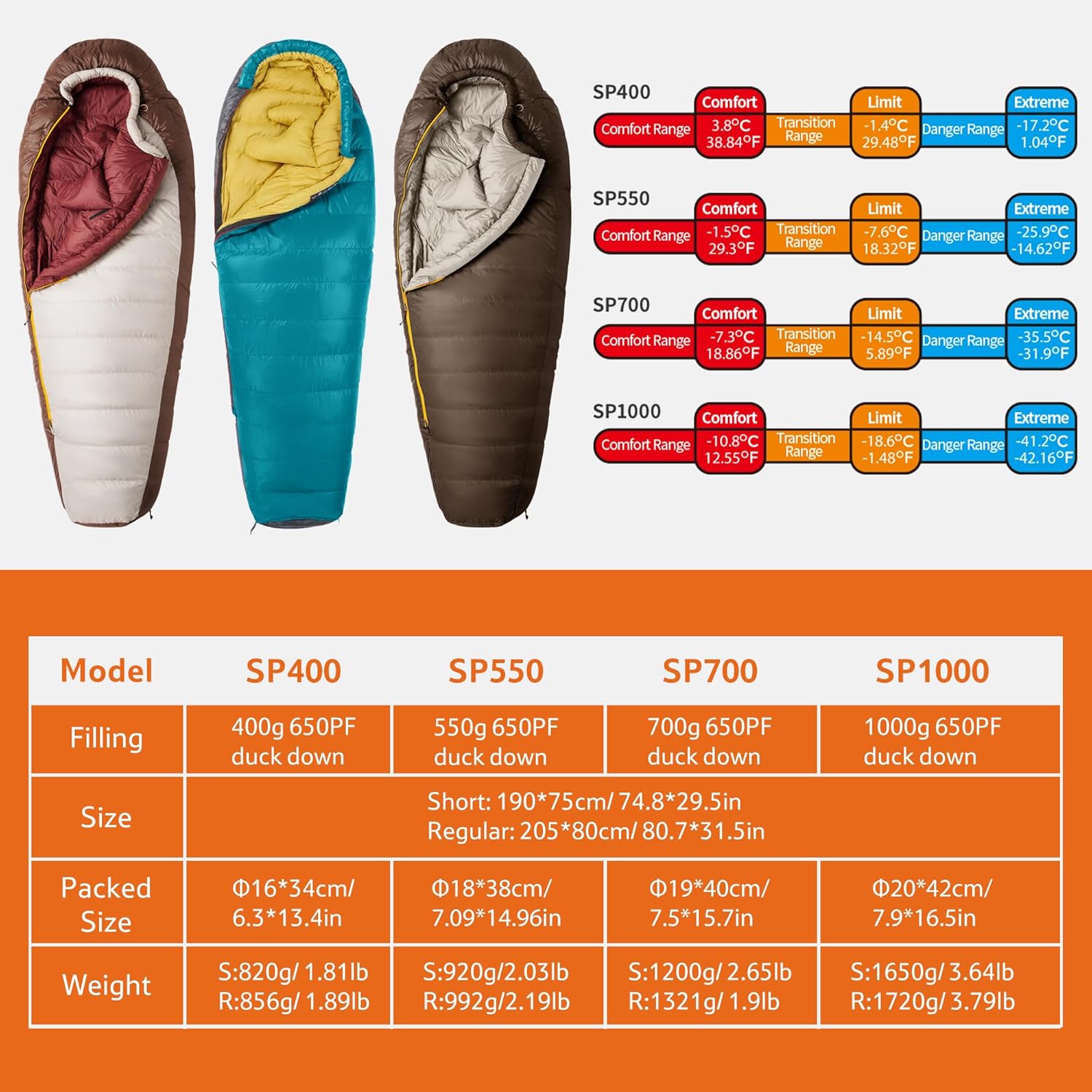 PREMIUM RDS&IDS CERTIFIED DOWN: The new 2025 Snowbird model sleeping bags are made from traceable down and certified by RDS Professional. Each item’s label can be scanned to track the origin of the down. Selected high quality 650 fluffy duck down with 85% down content and fill weights of 400/ 550/ 1000 grams respectively, and tested by IDS in the USA