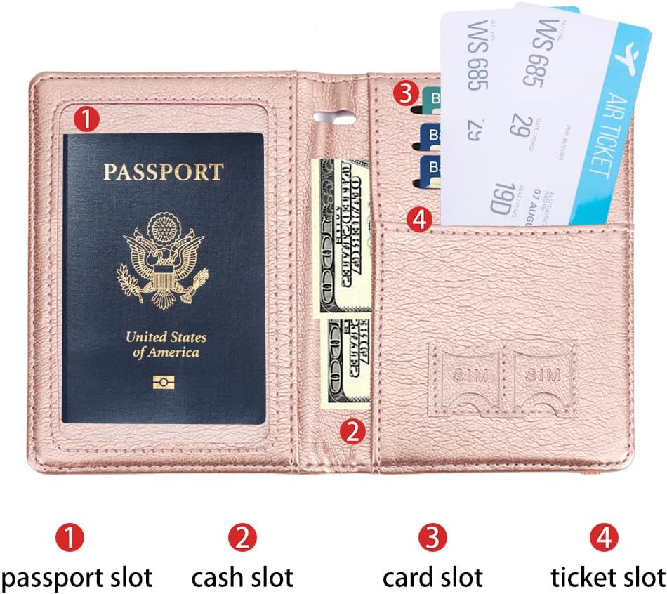 Ample Storage Capacity: Features multiple slots including a passport pocket, transparent card slot for vaccine cards, three credit card slots, two SIM card slots, boarding pass clip, cash clip, and pen slot, organizing all essentials like tickets, receipts, and IDs in one place.