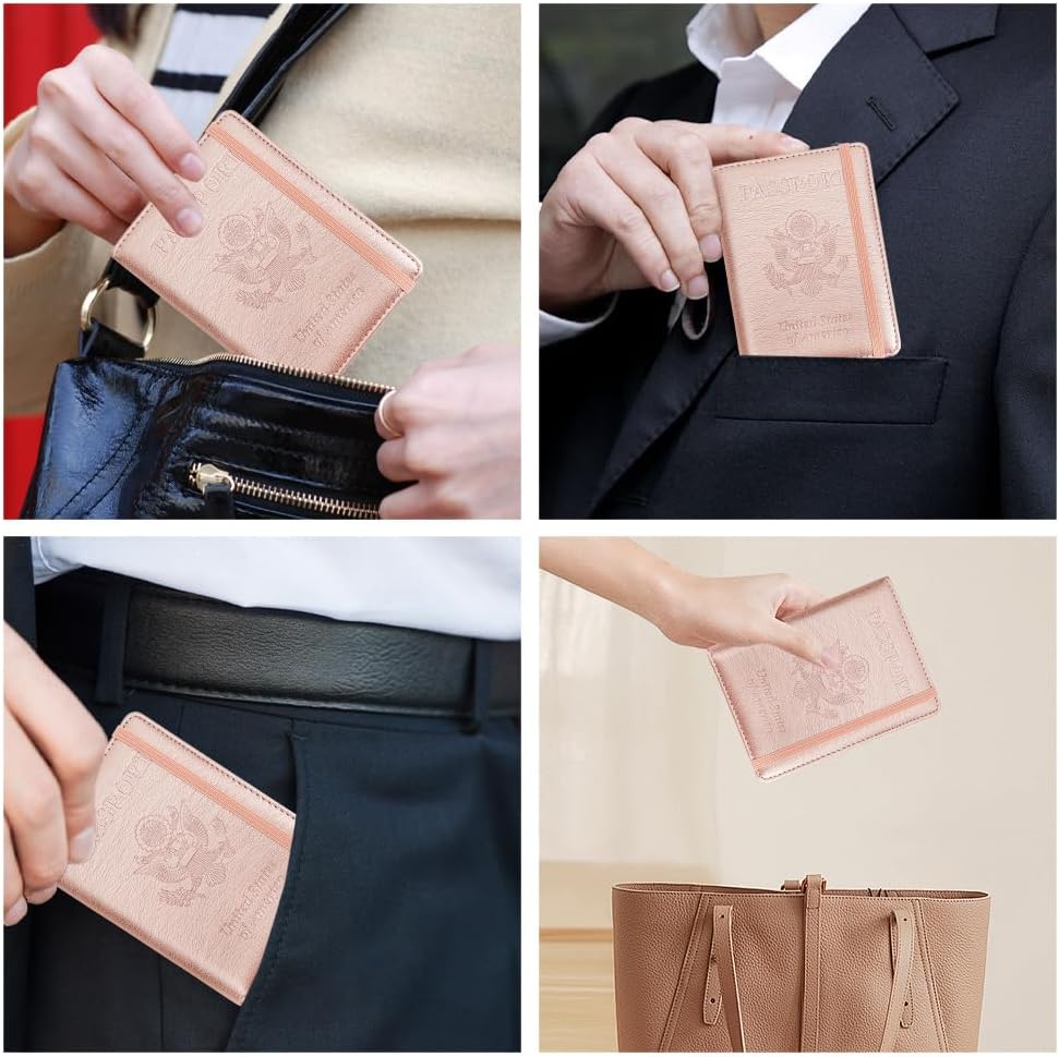 Premium Material and Durability: Our passport holder made from high-quality PU leather with waterproof properties and sturdy 3D embossing, ensuring long-lasting protection against dust, abrasion, and easy cleaning for passports and documents.