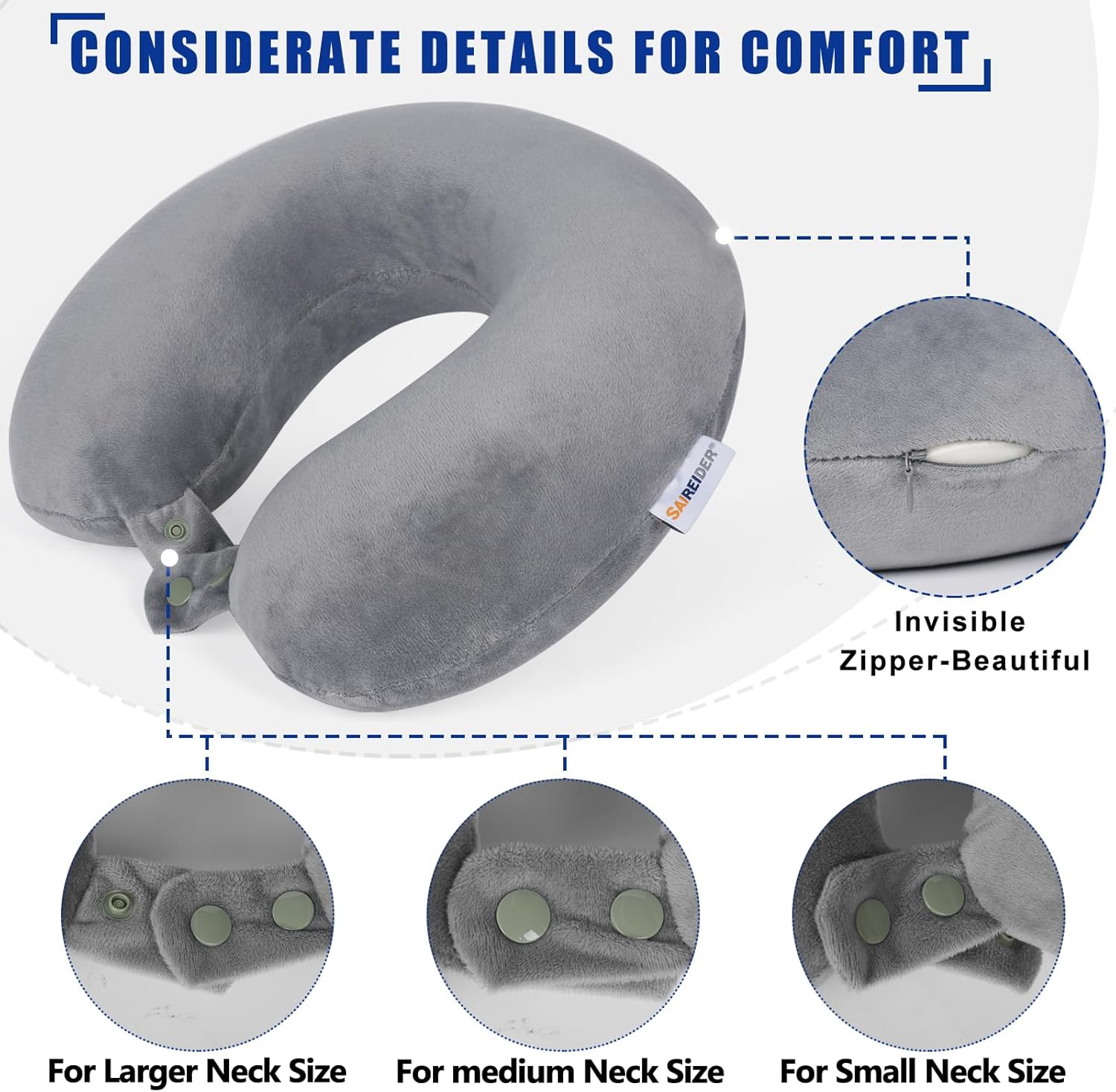 Detail design: Three sizes for you to adjust, invisible zipper, Removable cover always clean
