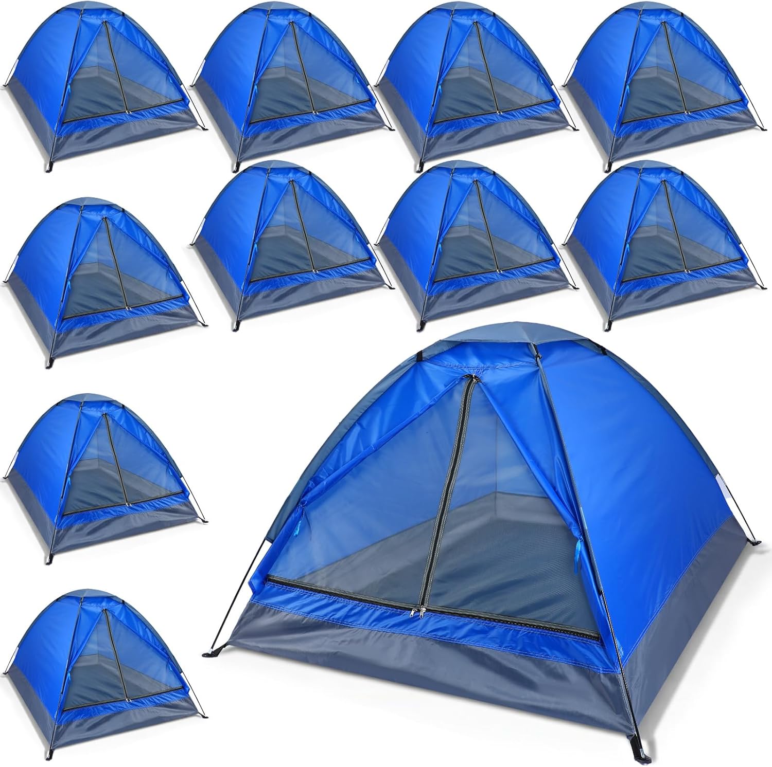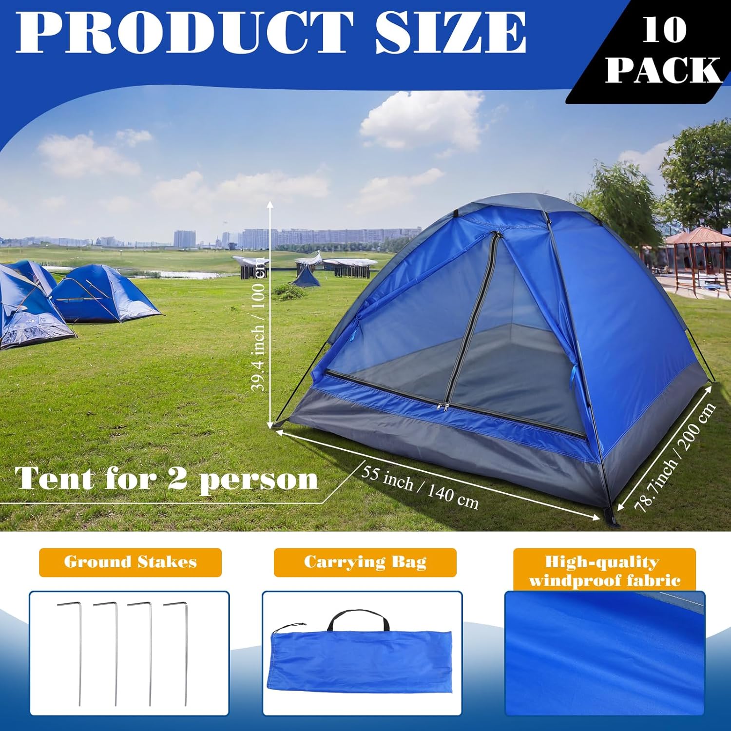 SATINIOR 10 Pack 2 Person Tents for Homeless Bulk Homeless Backpacking Supplies Lightweight Tent Waterproof Windproof Setup with Stakes Carrying Bag for Camping Charitable Donation