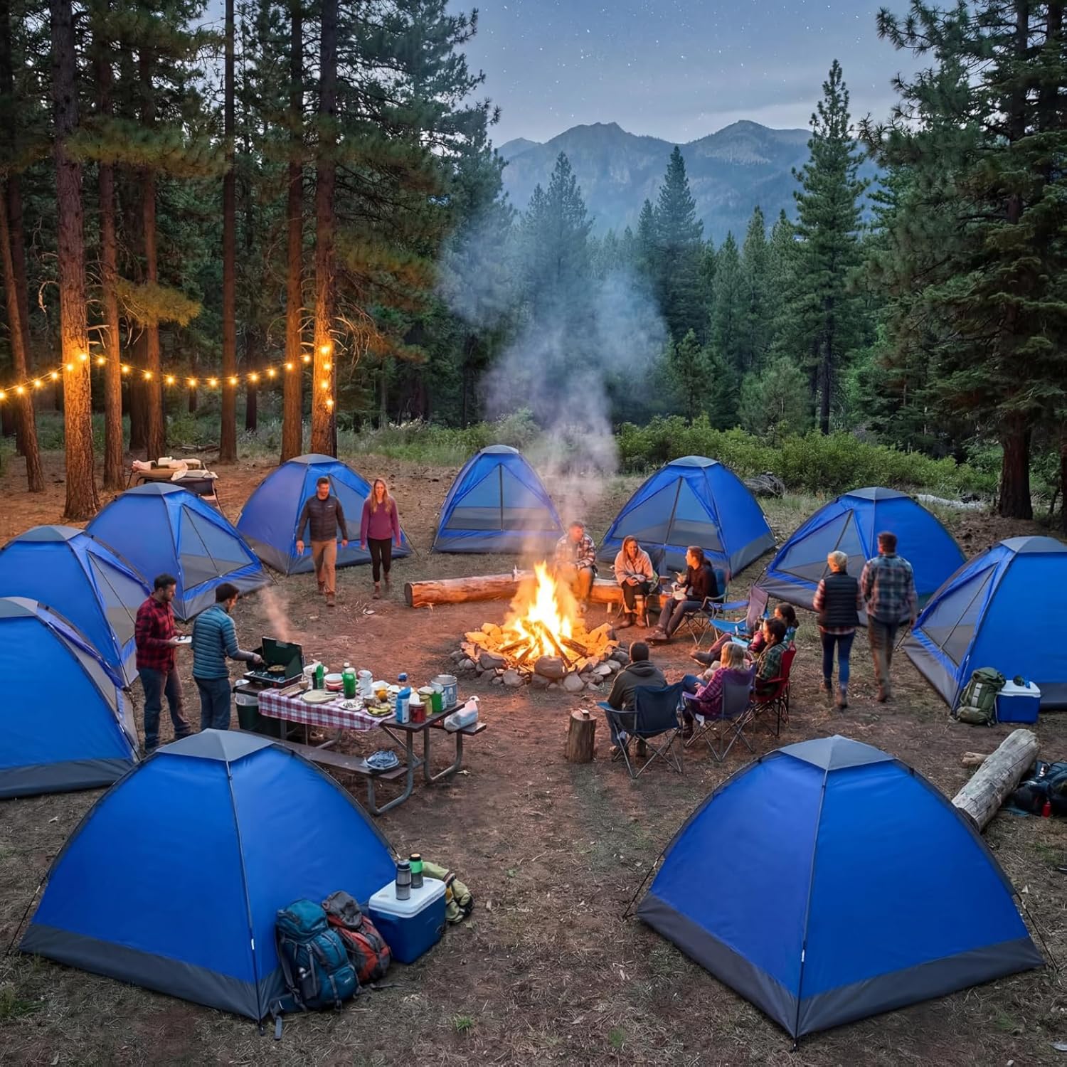 Dual Door Ventilation with Rain Fly: tents for camping the dual layer door design combines breathable mesh with an outer fabric layer, supporting airflow while reducing insects. The integrated rain fly adds extra overhead protection from rain and wind, improving interior comfort. This 2 person tents balances ventilation and shelter needs for extended outdoor use in varied conditions