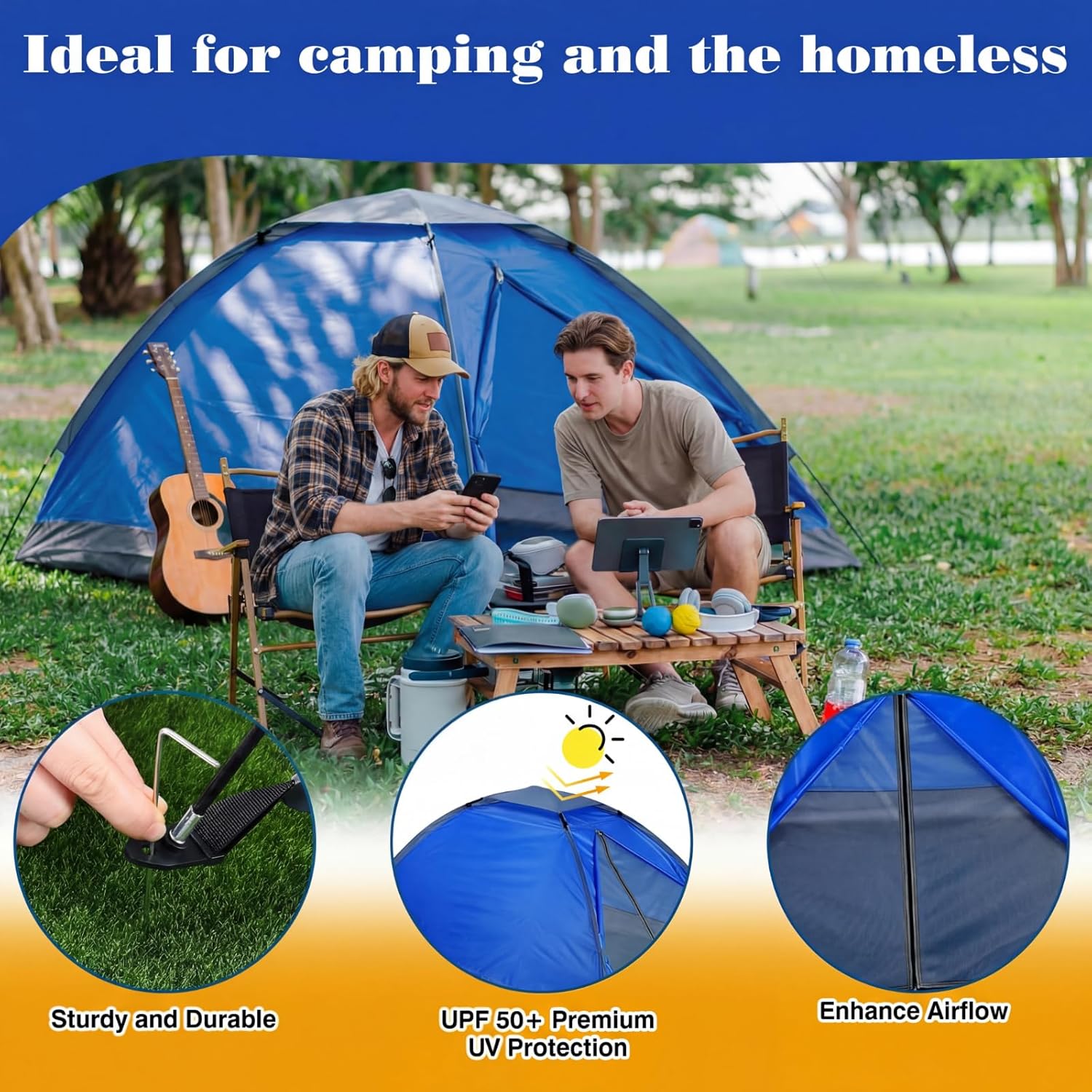 Quick Setup: small tents manual setup design allows fast and easy assembly. Each tent includes 4 sturdy ground stakes to ensure stability on grass, soil, or other outdoor surfaces, no tools required. Lightweight construction combined with a compact packed size supports easy carrying by foot or backpack, ideal for homeless individuals, volunteers, and mobile aid teams operating in urban or outdoor environments