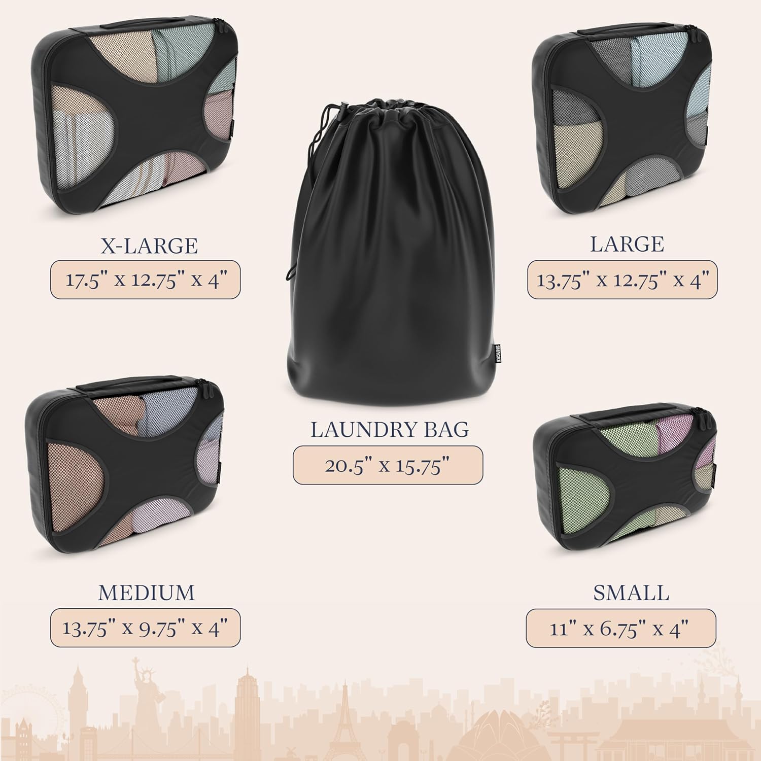 DURABLE AND LIGHTWEIGHT PROTECTION: Secure your belongings with compression cubes for travel designed to withstand the rigors of any journey; crafted from high-quality, resilient materials that resist wear and tear while remaining lightweight, these cubes provide peace of mind by ensuring your items stay protected and organized—making packing not just efficient, but worry-free as you traverse new horizons with confidence.