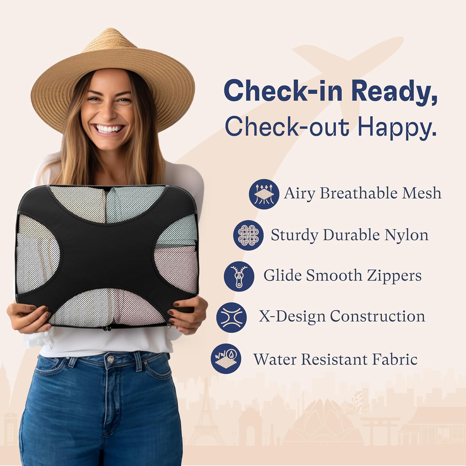 SPACE-SAVING COMPRESSION: Make the most of your suitcase space with these packing cubes for travel; compress your clothes efficiently, reducing bulky excess so you can bring more essentials. Ideal for the savvy traveler who desires both organization and extra room for souvenirs, allowing you to pack smarter and explore longer without sacrificing style or comfort.