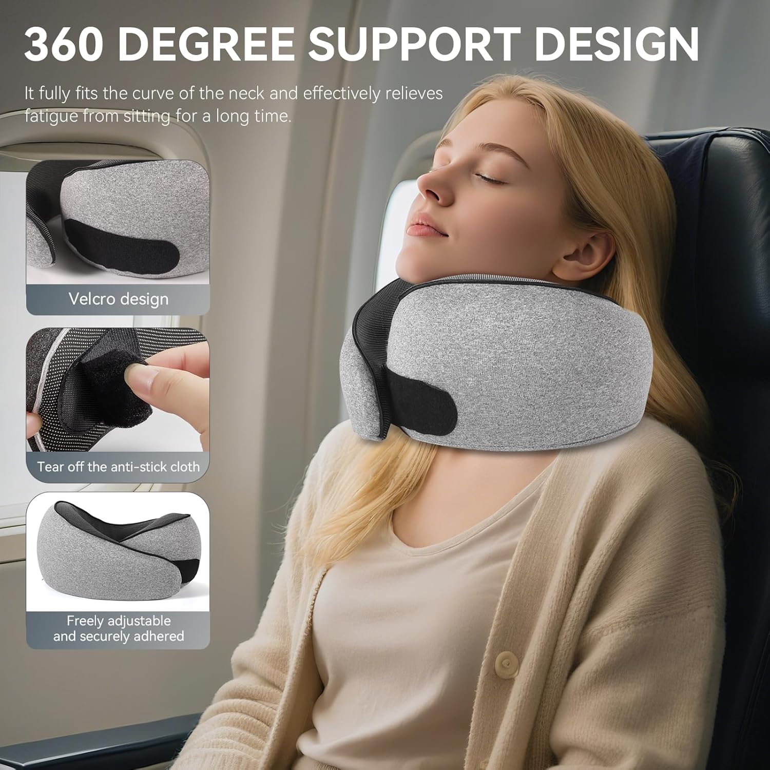 【Anti-Stick Design】Our Neck Pillow Has A Layer of Anti-Stick Cloth to Prevent Other Things From Sticking to It When Not In Use. After Tearing off, It Can Stick Firmly.
