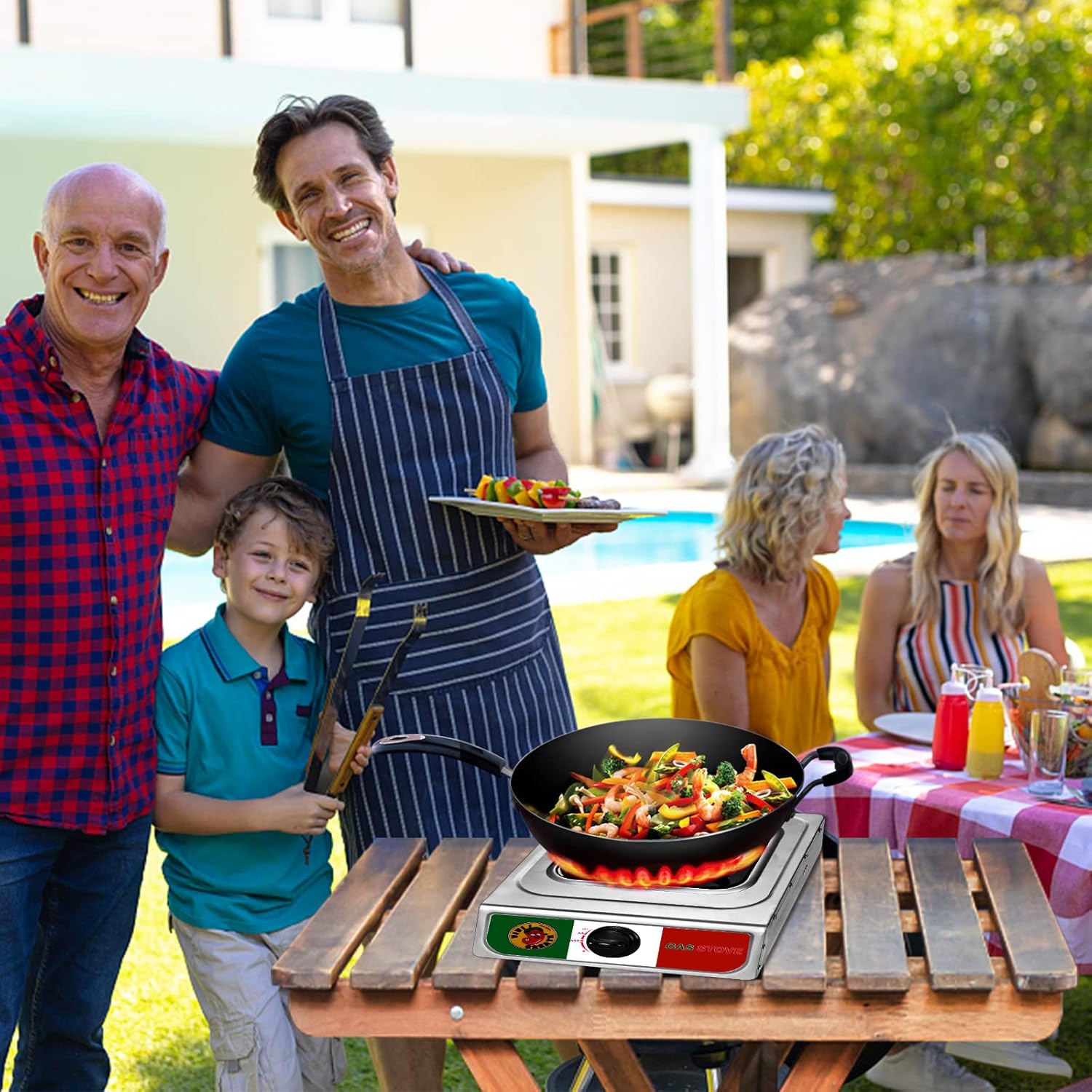 🔥 10,000 BTU High Heat Output Provides steady and efficient heat for outdoor cooking, boiling, and frying Salida de calor de 10,000 BTU para cocinar, hervir o freír de forma eficiente al aire libre