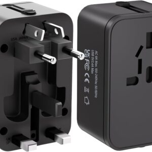 Travel Plug Adapter with 2 USB A+1 USB C,Universal All in One Worldwide Travel Adapter,Power Converters Wall Charger,AC Power Plug Adapter,International Power Adapter for USA EU UK AUS Black