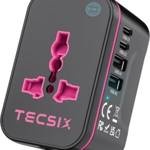 Universal Travel Adapter Worldwide, TECSIX European Travel Plug Adapter with 2 USB C, 2 USB A and Multi AC Outlets, International Power Converter for EU US UK AUS 200+ Countries Type A C G I