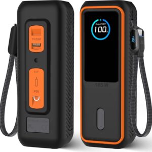 Soft Silicone Case for Anker Laptop Power Bank (25,000mAh/165W), SD/SIM Card Storage, Display Shockproof Protection & Dustproof, Travel Protective Cover for Anker Power Bank 165W (Black Orange)
