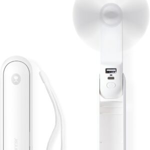 JISULIFE Portable Handheld Fan, Mini Personal 3-In-1 with Power Bank&Flashlight, 12-19 Hrs USB Rechargeable Battery Pocket Fan for Travel/Summer/Vacation/Concert, Essential Gifts for Men/Women-White