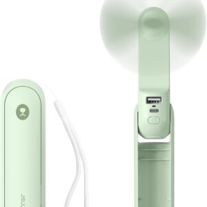 JISULIFE Portable Handheld Fan, Mini Personal 3-In-1 with Power Bank&Flashlight, 12-19 Hrs USB Rechargeable Battery Pocket Fan for Travel/Summer/Vacation/Concert, Essential Gifts for Men/Women-Green