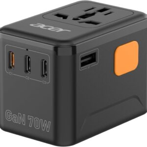 Acer 70W GaN Universal Travel Plug Adapter – International Power Adapter with 3 USB C & 1 USB A, Worldwide Power Outlet Travel Essentials for USA to European UK AUS Ireland, Type C/G/I/A, Black