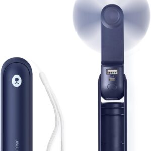 JISULIFE Portable Handheld Fan, Mini Personal 3-In-1 with Power Bank&Flashlight, 12-19 Hrs USB Rechargeable Battery Pocket Fan for Travel/Summer/Vacation/Concert, Essential Gifts for Men/Women-Blue