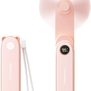 SWEETFULL Portable Handheld Mini Fan with LED Display, 3-in-1 Personal Foldable USB Rechargeable Hand Held Fan & Flashlight for Travel, Lash Eyelash, Cute Small Pocket for Women, Girls