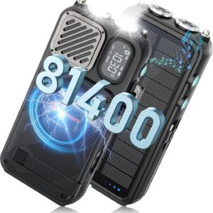Emergency Radio&22000mAh Solar Power Bank, FM NOAA Weather Radio, Portable Hand Crank Bluetooth Radio, 20W Fast Charge Wireless Phone Charger, SOS Flashlight for Emergency/Home (Blue)