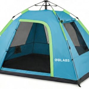 Golabs CT3 2 Person Instant Camping Tent, 1-Minute Setup by Pre-Attached Pole, 4 Side Mesh & Door Ventilation, Lightweight 4.8lbs Portable Design with Carry Bag, Inner Storage Pockets & Hooks for Park