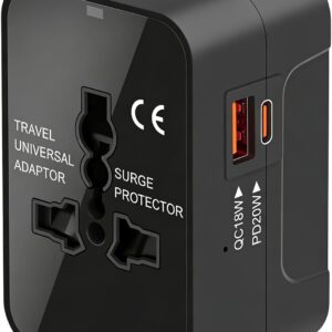 Universal Travel Adapter Worldwide, GaN Fast Charging with PD 3.0 USB-C & USB-A Quick Charge Ports, All-in-One International Power Plug Adapter Converter AC Wall Charger for Europe USA UK AUS Black