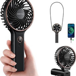 SWEETFULL Handheld Portable Fan, 5000mAh Rechargeable Battery, 6 Speed Wind, LED Digital Display, Foldable Electric Personal Mini Travel Fan with Backup Power, Summer Essentials Gifts for Women Girl