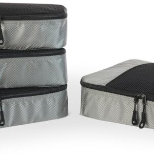 Amazon Essentials 4-Piece Packing Cubes Travel Accessories Set, Space-Saving Luggage Organizer with Double Zipper, Mesh Top Panel, Medium, Gray (Previously Amazon Basics)
