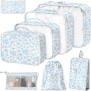 8 Set Packing Cubes for Suitcases,Packing Cube with Shoe, Cosmetics, Clothing, and Accessories Bags Packing Cubes for Travel Luggage Organizer Women Men(Blue Flowers)