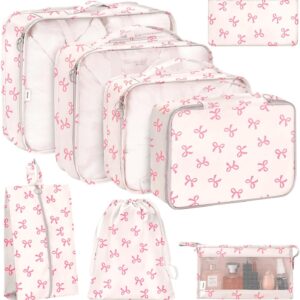 KPX 8 Set Packing Cubes for Travel, Luggage Packing Organizers Accessories Large Toiletries Bag for Clothes Shoes Cosmetics (8Set-Pink Bow)