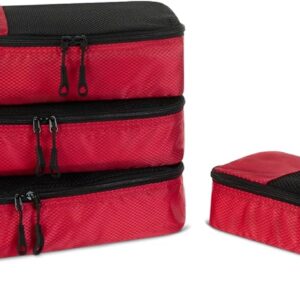 Amazon Essentials 4-Piece Packing Cubes Travel Accessories Set, Luggage Organizer, Double Zipper, Mesh Top, Space-Saving Suitcase Organizer, Small/Medium/Large/Slim, Red (Previously Amazon Basics)