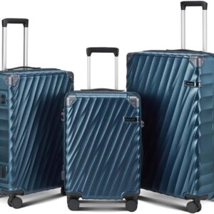 Luggage sets 3 piece with Spinner Wheels, PC Hard Shell Travel Luggage, Carry On suitcase with TSA Lock,YKK Zippers,Charcoal Metallic (Navy, 3 Piece Sets(20/24/28))