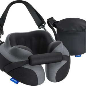 ZIKEE Ergonomic Travel Neck Pillow for Airplane, Dual-Hold Design to Stabilize Head and Neck on Flights, Ear-Free Memory Foam Airplane Travel Pillow, Quality Carrying Case, Breathable & Washable Cover