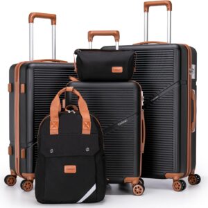 Luggage Sets 5 Piece Suitcases with Wheels, Suitcase Set ABS Hard Case Luggage with TSA Lock Spinner Wheels Durable Travel Luggage (5-Piece Set(20″/24″/28″))